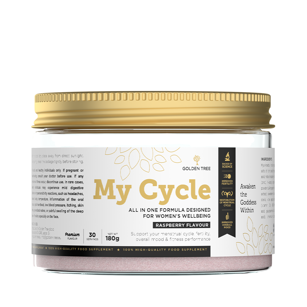 A Golden Tree My Cycle formula alapja a Myo-inozitol, amelyet gyakran csak inozitolnak neveznek. Ez egy olyan vegyület, amely részt vesz a sejtmembránok kialakulásának folyamatában, és pozitív hatással van az inzulin érzékenységre, ami természetesen közvetett hatással van a testszerkezetre (zsírszázalék, izomtömeg százalékos aránya stb.), ami természetesen fontos, hiszen azt szeretnénk, ha minden nő a lehető legjobban érezné magát a testében.